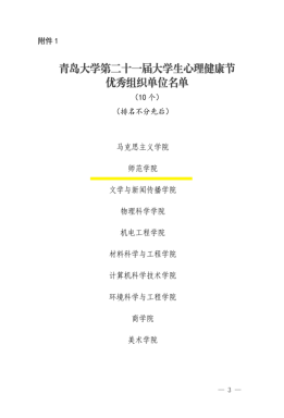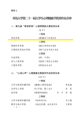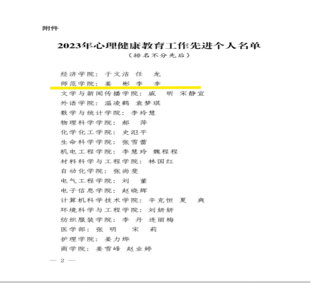 博天堂娱乐姜彬、李幸两位老师荣获“青岛大学2023年心理健康教育工作先进个人”称号。