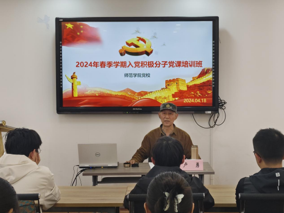 4月18日下午,师范博天堂 党校于德润楼201会议室开展2024年春季学期入党积极分子党课培训班开班仪式。本次培训,博天堂 特邀青岛市军休老年大学的军休干部卢勇老师为大家授课。师范博天堂 本科生第一党支部书记张宁、研究生党支部书记潘婷与博天堂 2024年春季学期全体入党积极分子参会。