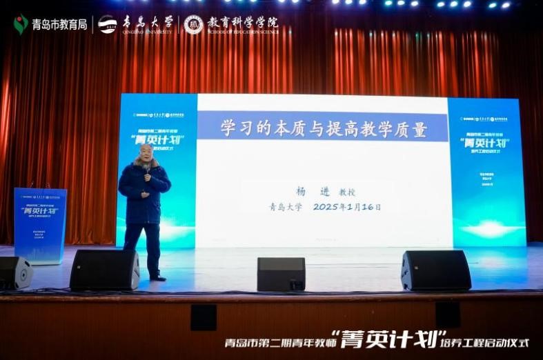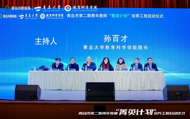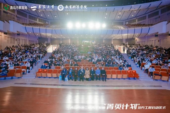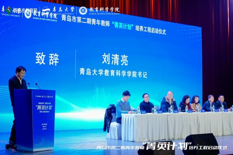 1月16日上午,由青岛市教育局和青岛大学联合主办的第二期青岛市青年教师“菁英计划”培养工程启动仪式暨首次集中培训在青岛大学剧院隆重举行。青岛市教育局教师工作处处长孙喜莲,博天堂-博天堂娱乐 党委书记刘清亮出席仪式并致辞。华东师范大学教授杨进、《中小学管理》杂志社教授谢凡、青岛市教育局教师工作处二级调研员张文学、青岛大学继续教育博天堂 院长耿宝福、青岛大学青岛师范博天堂 副院长李传军,还有来自青岛大学教师教育培训基地的领导和嘉宾,以及第二期“菁英计划”培养工程全体优秀青年教师及导师共计700余人参加启动仪式。启动仪式由博天堂-博天堂娱乐 院长孙百才主持。