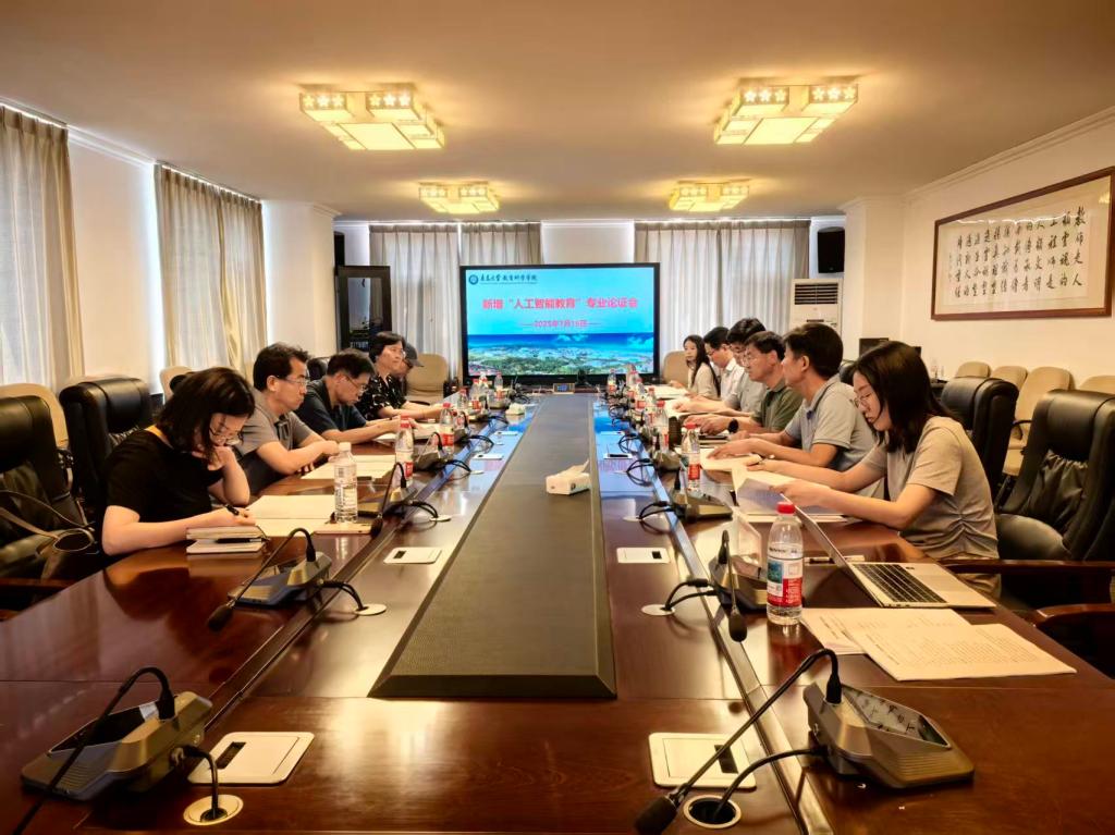 随后,教育技术系主任杨进中、教师徐亚倩分别就教育技术学专业发展情况及 “人工智能教育” 专业申报的前期调研、培养方案设计、课程体系构建、人才队伍建设等材料准备情况进行了详细汇报。