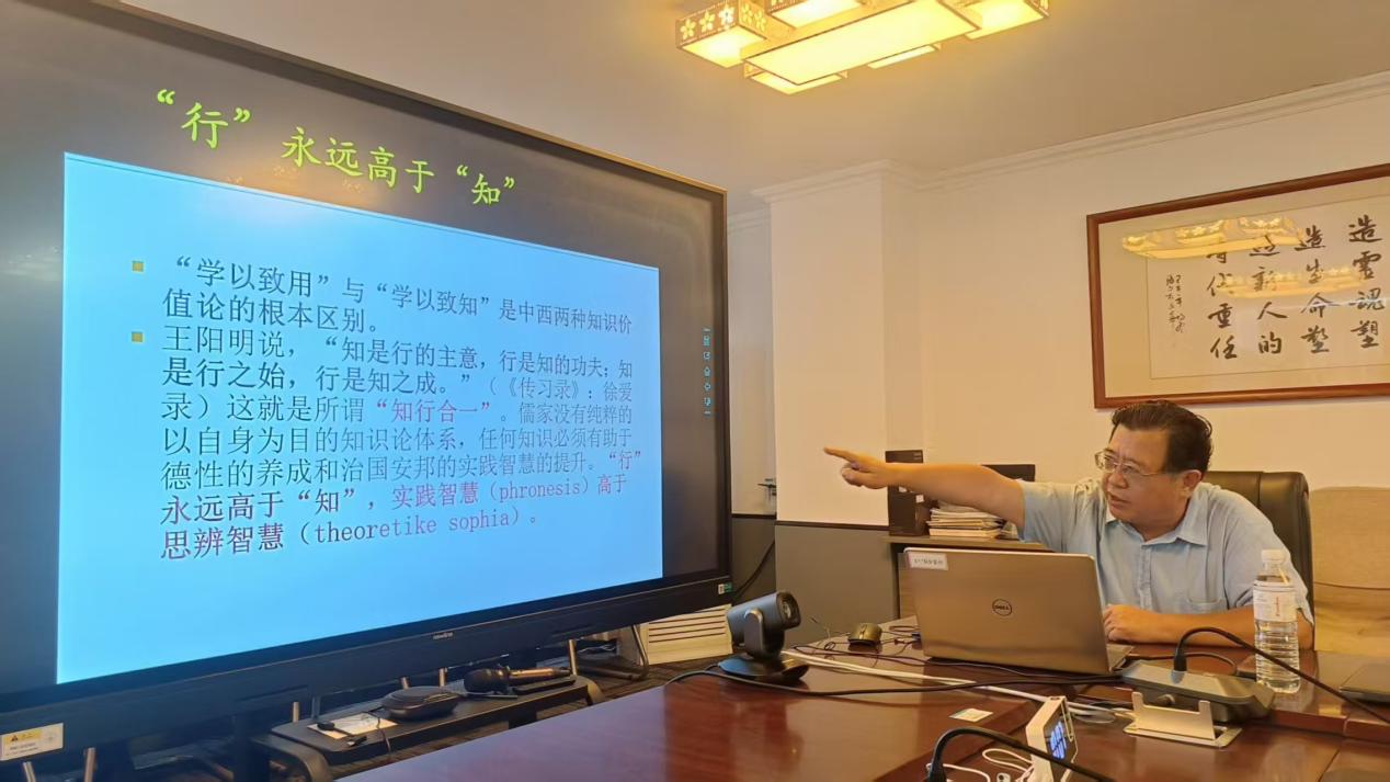 在讲座中,崔延强教授提出君子是儒家文化的核心范畴,深刻体现了中国教育家所特有的精神气质。崔教授围绕君子好学、君子弘道、君子乐生三个要义,阐释了率性修道、明体达用,尽心知性、成己成物,大德受命、因材而笃,好学近知、力行近仁,格物致知、修齐治平的中国传统教育家精神。