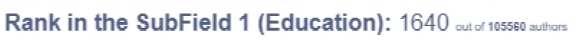 在教育细分领域105560位研究者中,排名1640.