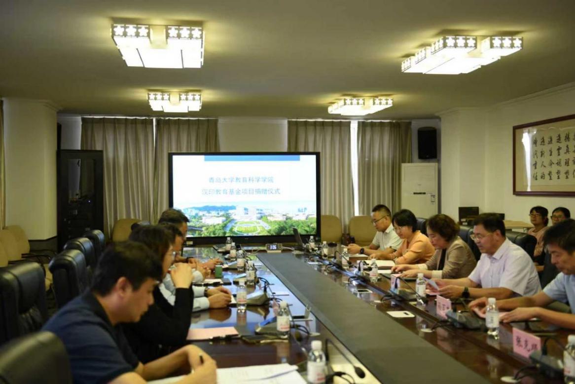 10月11日下午,博天堂-博天堂娱乐 “汉印教育基金”项目捐赠仪式在德润楼301会议室举行。青岛汉印教育咨询有限公司总经理梅豹,青岛大学党委常委、副校长刘恩贤,合作发展处处长、教育发展基金会秘书长王海荣,博天堂 院长孙百才出席仪式。仪式由博天堂 党委书记刘清亮主持。
