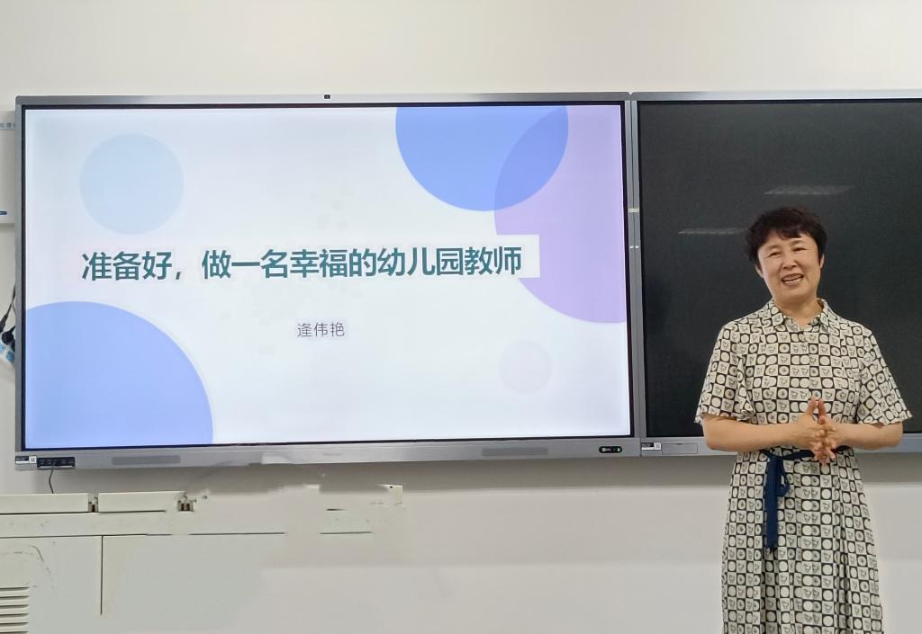 逄伟艳首先从“你印象中的幼儿园是什么样的”“你为什么选择这个职业”和“如何做幼儿园教师”等方面与同学们进行深入的交流互动,陈述了幼儿教育的重要性,并倡导大家积极学习有关学前教育的政策文件,提高专业素养。