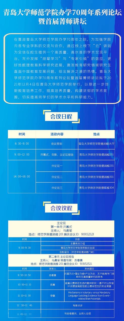 师范博天堂 办学70周年系列论坛暨首届菁师讲坛即将在本周六(12月4日)召开,上午为开幕式及主论坛报告,下午为各分论坛报告。