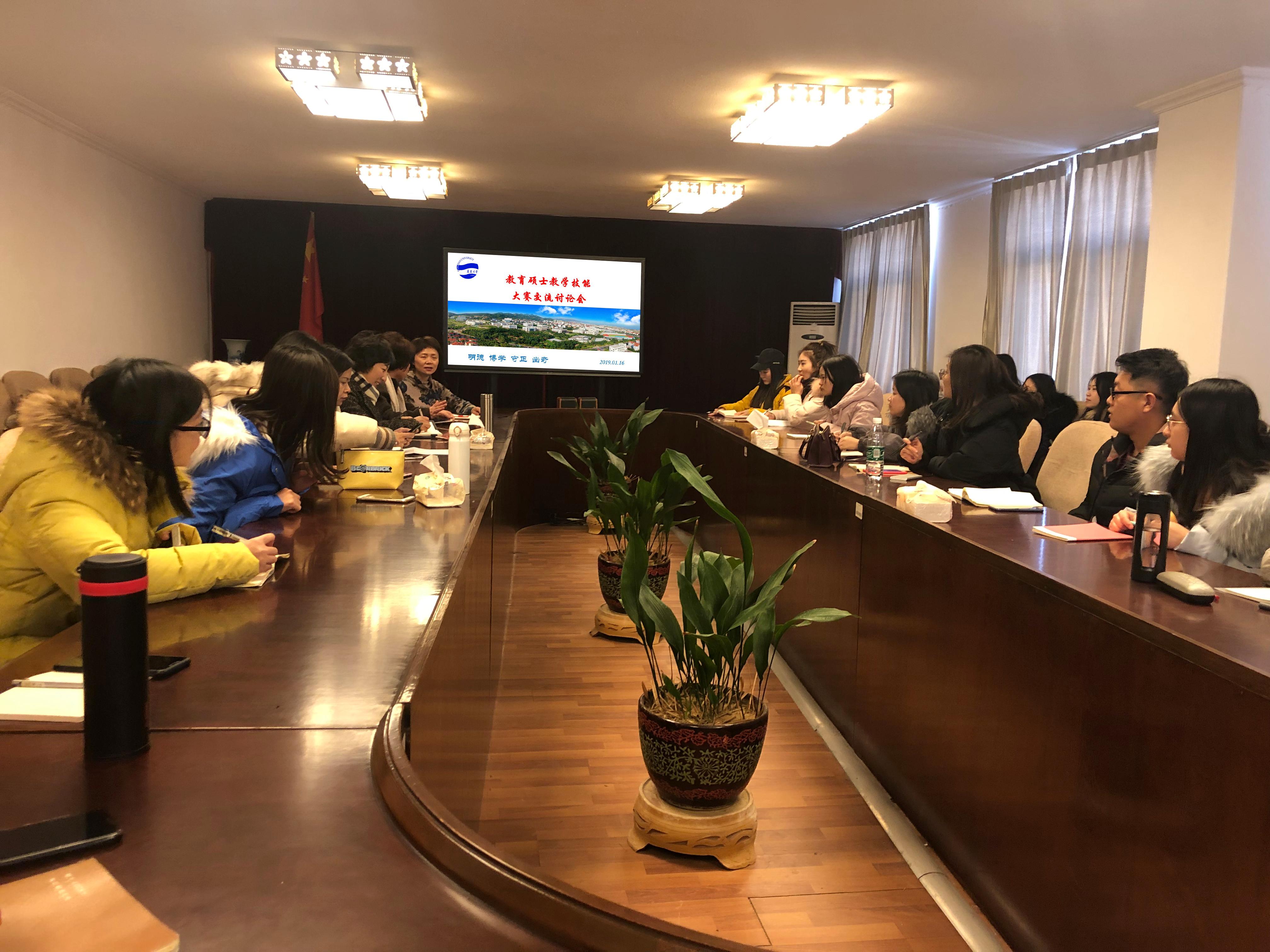 2019年1月16日,师范博天堂 教育硕士教学技能大赛交流讨论会在办公楼301举行,会议特邀教育部中小学生心理健康教育专家委员会委员、西南民族大学社心博天堂 院长陈秋燕教授来博天堂娱乐指导,师范博天堂 全体教育硕士及部分老师参加讨论会。