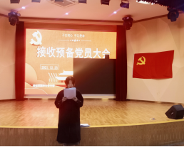12月23日下午,师范博天堂 学生党支部于学术报告厅召开接收预备党员大会及预备党员转正大会,大会由学生党支部宣传委员张宁主持,学生党支部全体党员及预备党员参加本次会议。