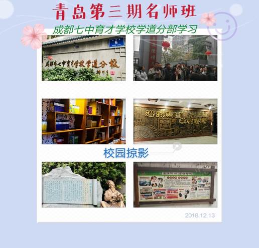 上午,我们一行来到了成都七中育才学校学道分校。这是成都市一所为数不多的五四制初中学校。学校不大,但处处有风景、处处有教育。操场上随时可用的体育器材,走廊上在不影响别人的情况下可随意弹奏的钢琴,随处可见的各具特色的学科主题活动,无不彰显着学道人的人文素养。