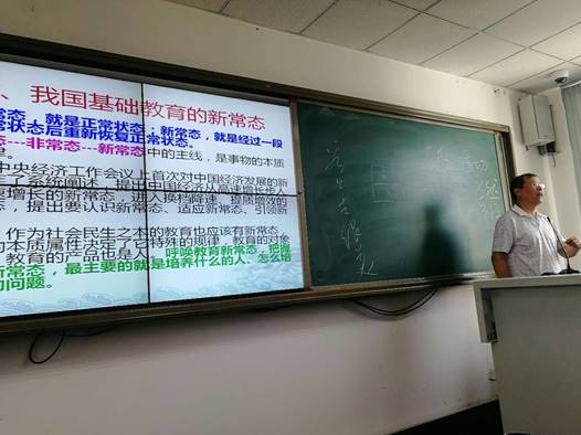 6月20日14时,青岛大学栾贻爱老师做了《基于核心素养发展的课程与教学改革》专题讲座。栾老师的讲座深入浅出、环环相扣,激发我们的兴趣和参与热情。大家踊跃发言,纷纷登台板书,各抒已见,在热烈的交流中碰撞出思想的火花。