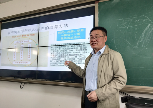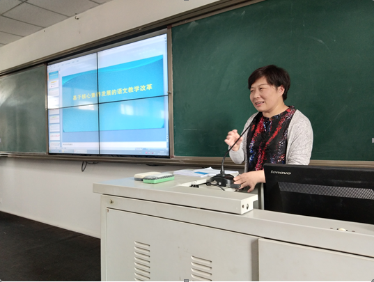 郑老师从语文核心素养的提出谈起,强调了核心素养对学生自身发展的重要性。又用具体的案例教给学员门语文核心素养在不同学科中的运用。郑老师从理论到实践,由粗到细,揭示了语文核心素养的内涵,教大家如何将语文核心素养落到实处,让语文核心素养的理念在我们心中落地生根。郑老师声情并茂的讲解激发了大家的学习热情。
