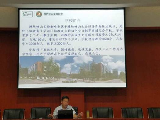 6月25日中午,我们乘高铁赴潍坊271教育集团考察学习。下午在峡山实验初中听取了唐培森校长《办有价值的教育》的专题报告。