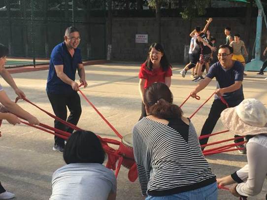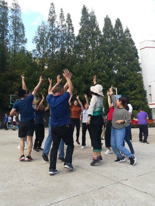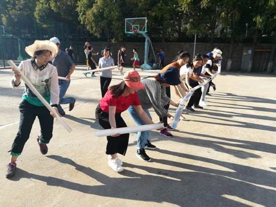 培训第一天下午是户外素质拓展,这让我们在熟悉彼此的同时增强了自信。林宁老师风趣幽默,用有趣紧张的破冰游戏带领大家进行团队组建与协作训练。在三个小时的时间里,我们组建队伍,齐心协力完成了不倒森林、能量传递、鼓面击球等团队活动。