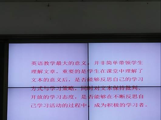 张老师还通过一个个生动精彩的教学案例,跟大家探讨了学生参与探究主题的意义。她提出,以文本教学为切入点;学生与教师的知识背景都极为重要;文本分析是否到位直接影响课堂教学效果。除此之外,教师要学会建立文本挖掘意识,从浅到深,从上到下,引导学生运用批判性思维进行学习,让外语学习成为学生主动构建知识体系的过程。