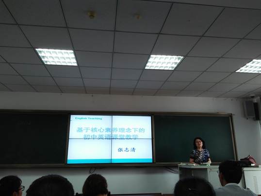 下午,张志清老师做了关于核心素养理念下初中英语教学的讲座。张老师认为,当前国家与社会对中学生的成长有了更高的要求,英语教学要借势而上,引领课程改革,体现育人理念。大家要在了解核心素养科学性、时代性、民族性三原则基础上,领会其三方面、六素养、十八基本要点的内涵,关注其对各学段学生提出的具体要求。