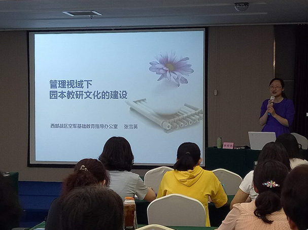 上午,西部战区空军基础教育指导办公室张雪英主任为我们做了题为《幼儿园教研文化的建设》的报告,主要从基于管理视域的思考、园本教研文化的认识、园本教研文化的建设等三个方面做了分享。张主任明朗温润、亲切幽默的报告如缕缕清风,让大家在轻松、愉悦的氛围中深切感受到了张主任打造的引领团队的精神文化、激励全员的自主文化、服务实践的成长文化、成就个体的闪亮文化等教研文化建设的历程。报告中的诸多案例引人入胜,引发大家的思考和共鸣——未来已来,我们要做面向未来的教研和教育!