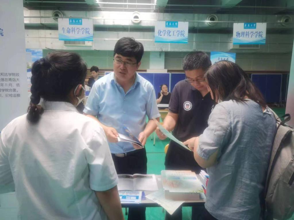 为了给考生与高校之间搭建良好的交流平台,及时准确有效的传递高校招考信息,便于考生和家长择校报考,助力考生志愿填报,青岛大学于6月26日在青岛大学体育馆举办了咨询见面会。院长助理王忠厚、教学办李兆福老师现场给考生和家长做服务咨询工作。